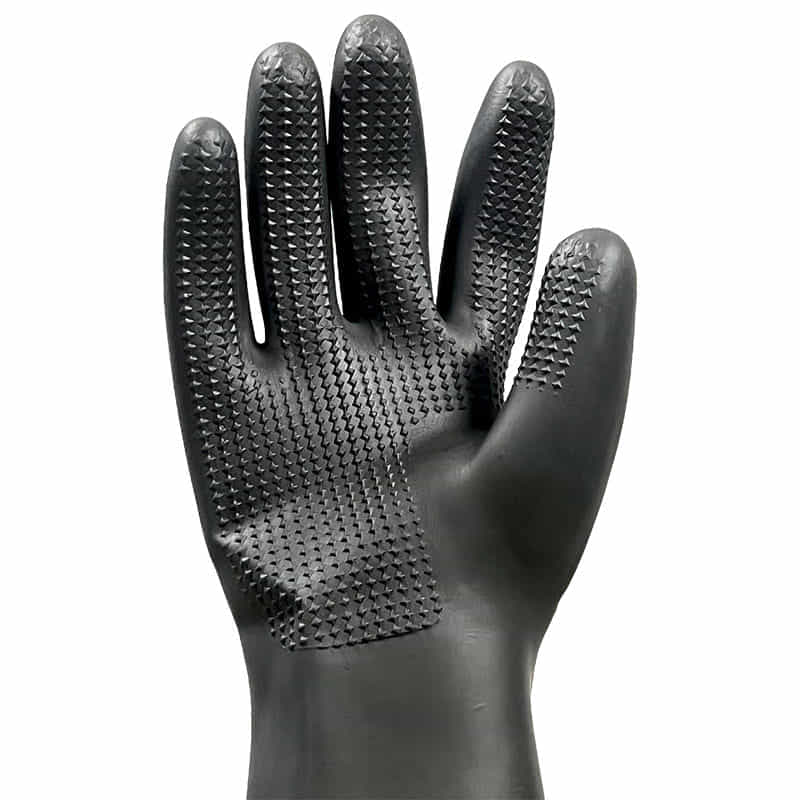 Dragon Hand Natural Rubber Gloves” – Black gloves made from 100% natural rubber. Suitable for general industrial work, general protection, and chemical protection.